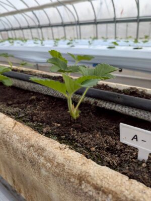 伊達苺ファームです。 夏イチゴ(品種:すずあかね)の定植から10日が経過しました。本日はハウス内を巡回し、苗の活着状況と生育状態の調査を行いました。